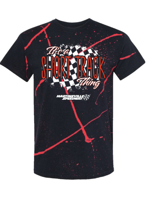 Gear up for race day with this Ladies Martinsville Speedway It's a Short Track Thing Splatter T-Shirt!